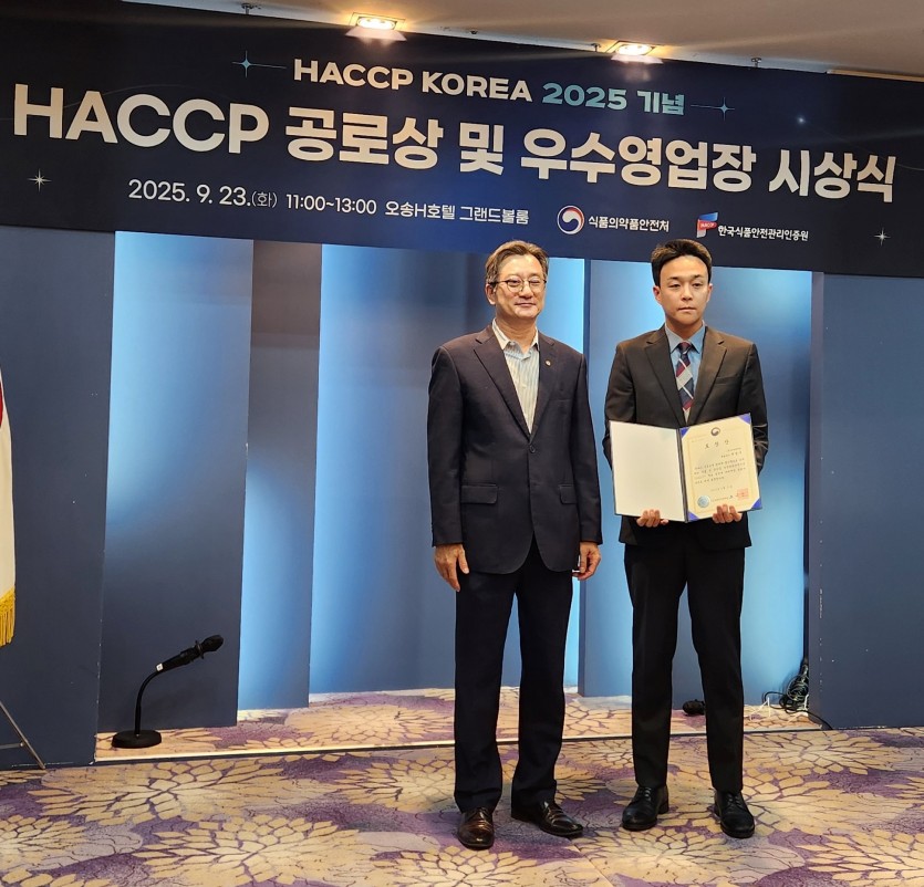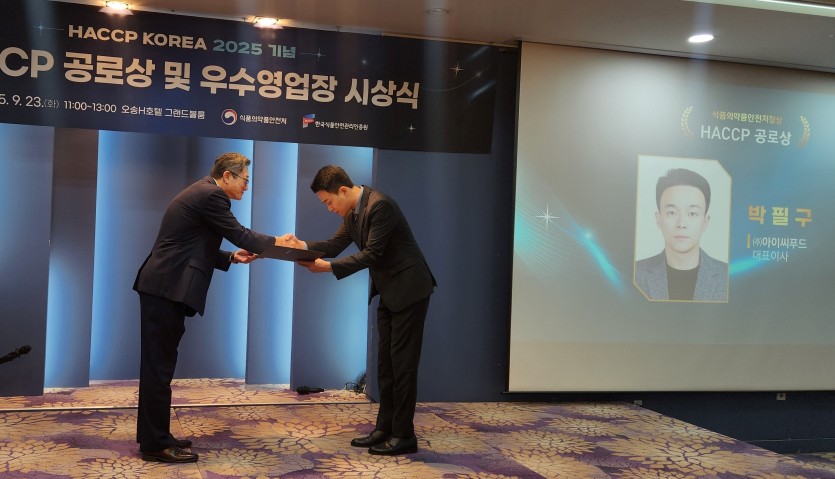 박필구 아이씨푸드 대표가 9월 23일 충북 청주 오송에서 열린 ‘HACCP KOREA 2025 기념 HACCP 공로상 및 우수영업장 시상식’에서